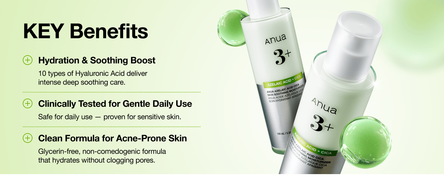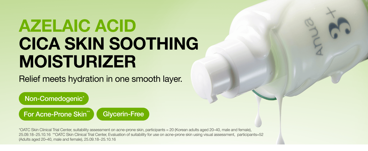 Formulated with 3% Azelaic Acid and CICA, this moisturizing cream is designed to calm sensitive, acne-prone skin. It helps maintain skin comfort and balance without clogging pores, making it suitable for everyday use.