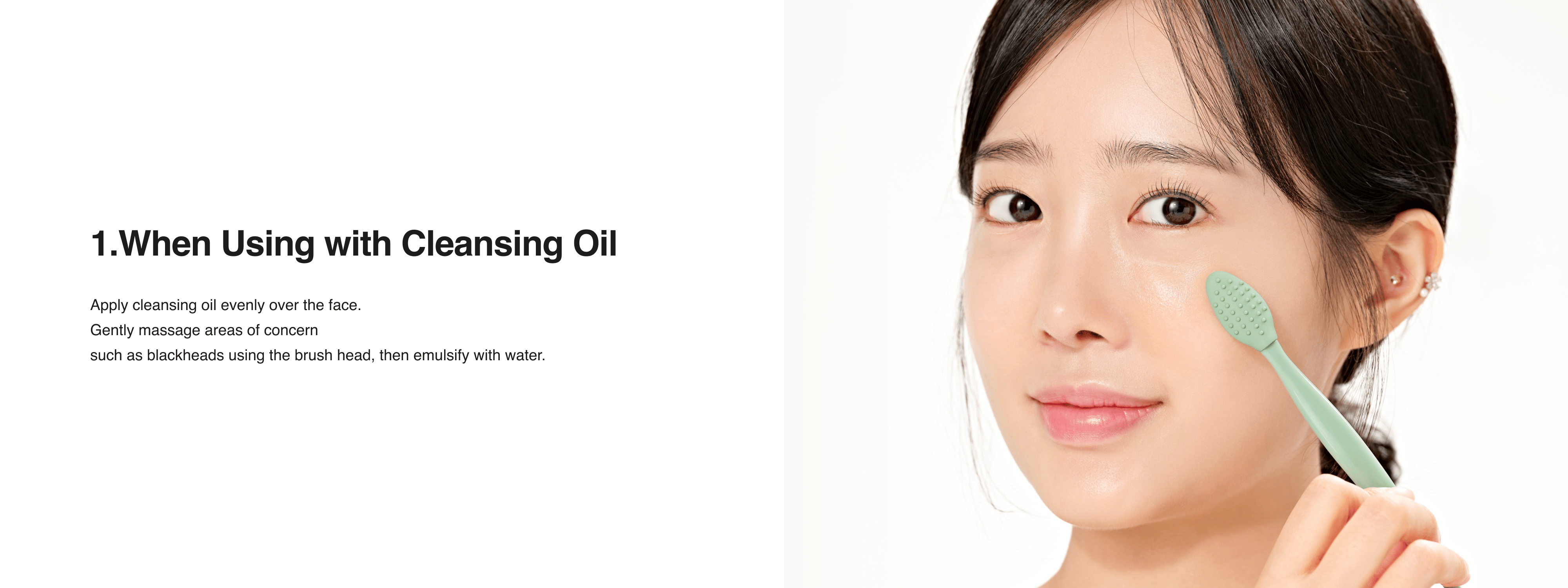 Apply an appropriate amount of cleansing oil to a dry face and gently massage to dissolve makeup, sunscreen, and excess sebum. Rinse thoroughly with lukewarm water, then follow up with a cleansing foam for a deeper cleanse and to remove any remaining residue.