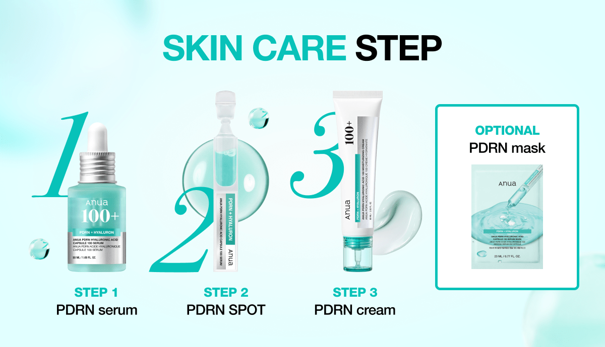 ✅Step 1. PDRN SERUM - Intense hydration & plump your skin instantly ✅ Step 2. PDRN Spot Capsule - Target problem areas for a glass-skin glow in 3 seconds ✅ Step 3. PDRN Cream - 100 hours of moisture & collagen boost for firm, radiant skin